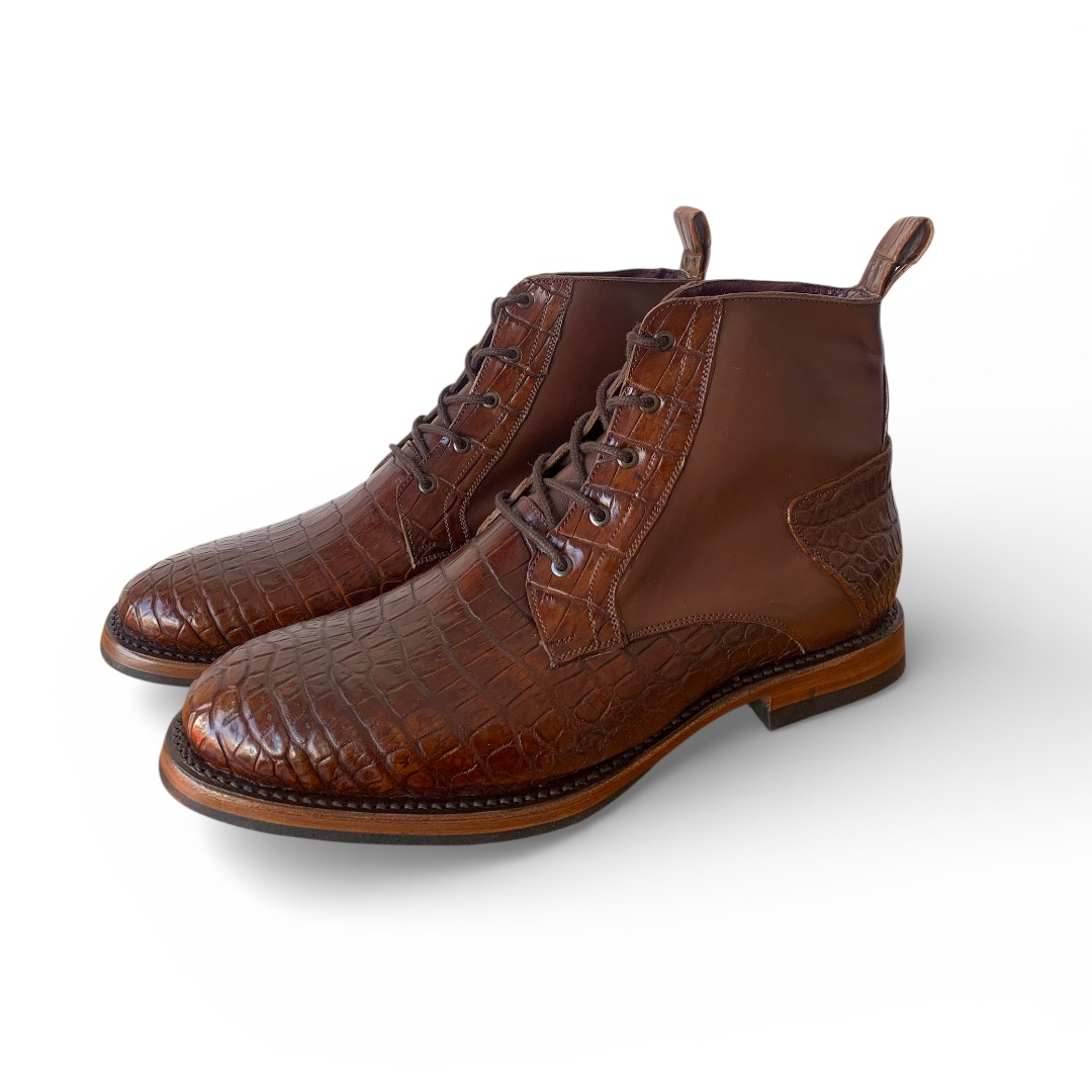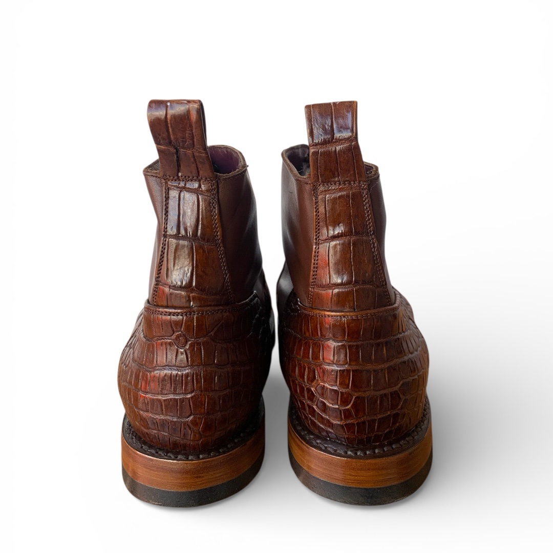 Thiago es una bota urbana de la familia de los “borcegui” hecha en piel original de cocodrilo, elaborada completamente a mano desde el corte hasta el acabado de forma artesanal. Te permite lucir muy elegante en cualquier situación. Ademas de ser muy cómoda por ser flexible.